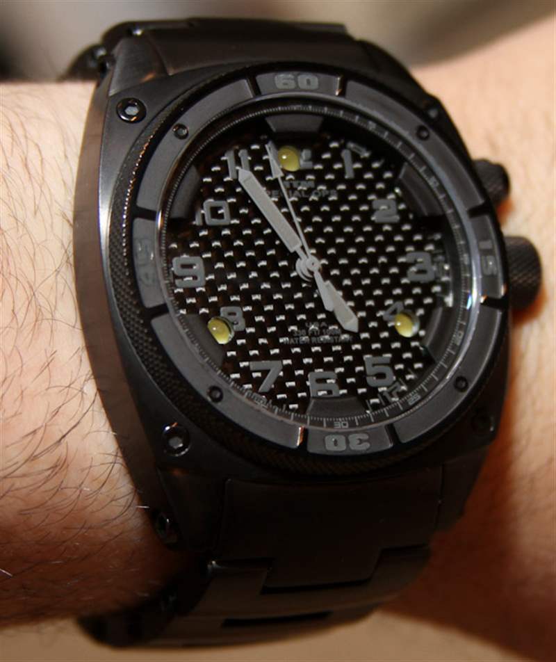 MTM 作為一個品牌制造了一系列“戰術時計”。實際或周末的勇士們可以從這些經久耐用的石英手表中得到樂趣。Falcon 是他們設計更優雅的手表之一,這里以其“Black on Black”風格進行評論。作為黑色腕表上的“幻影”黑色,表盤非常易于閱讀。別擔心,MTM 提供其他款式的這款型號,帶有更傳統的表盤,更容易看到。盡管如此,我還是很喜歡這件作品的外觀。為什么清晰易讀?這是因為使用了許多紋理和黑色陰影。表盤、數字和指針都是深淺不一的黑色,具有不同的質感。表盤實際上是碳纖維,而啞光處理的指針和小時數字對比相當好,很容易看清。