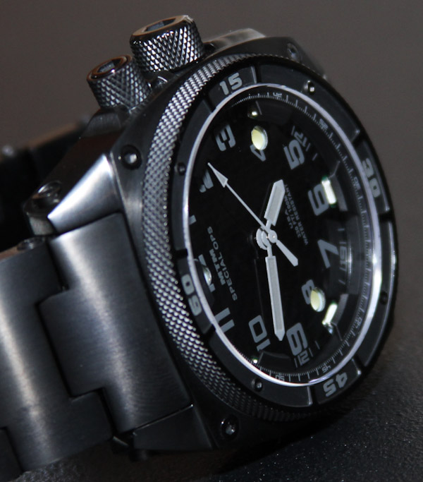 表盤的易讀性幾乎沒有受到燈光的影響,當它們沒有打開時很容易看過去。雖然我覺得表盤上的指針應該更長一些,但表殼卻相當易于閱讀,呈現出陽剛之氣,沒有廢話的設計感。這個版本的獵鷹有一個 44 毫米寬的鈦金屬表殼。整個表殼涂有黑色 DLC 涂層。DLC 代表“類金剛石碳”,非常耐刮擦。然而,盡管表殼和表鏈是鈦金屬,但考慮到內部組件的尺寸和重量,這并不是一款過輕的手表。雖然我也不認為它很重。那些尋找更偏僻的手表的人可能想用 Falcon 上的某種橡膠表帶代替金屬表鏈。廣告留言廣告信息結束