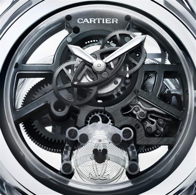 外殼沒有將其固定在一起的螺釘。事實上,它也沒有真正的空氣。這是我聽說的第一款具有真空密封內腔的手表。手表的底蓋被真空吸到表殼的其余部分——所以不要試圖撬開它。手表中 99.5% 的無空氣空間減少了空氣引起的摩擦——主要是通過擒縱機構。根據卡地亞 (Cartier) 的說法,從表殼中去除空氣幾乎可以完全去除因空氣摩擦而損失的能量,從而顯著提高機芯的能量效率。很酷。盡管當您考慮其中的含義時,并發癥會增加。這些都是小事,例如如何密封表殼、如何調整機芯以及無空氣空間如何影響機芯。簡而言之,卡地亞不得不為一些東西申請專利,去除機芯上的所有潤滑劑,并使用一些幾乎無摩擦且不需要油的奇特新材料。比標準硅更先進的東西。