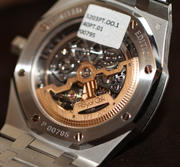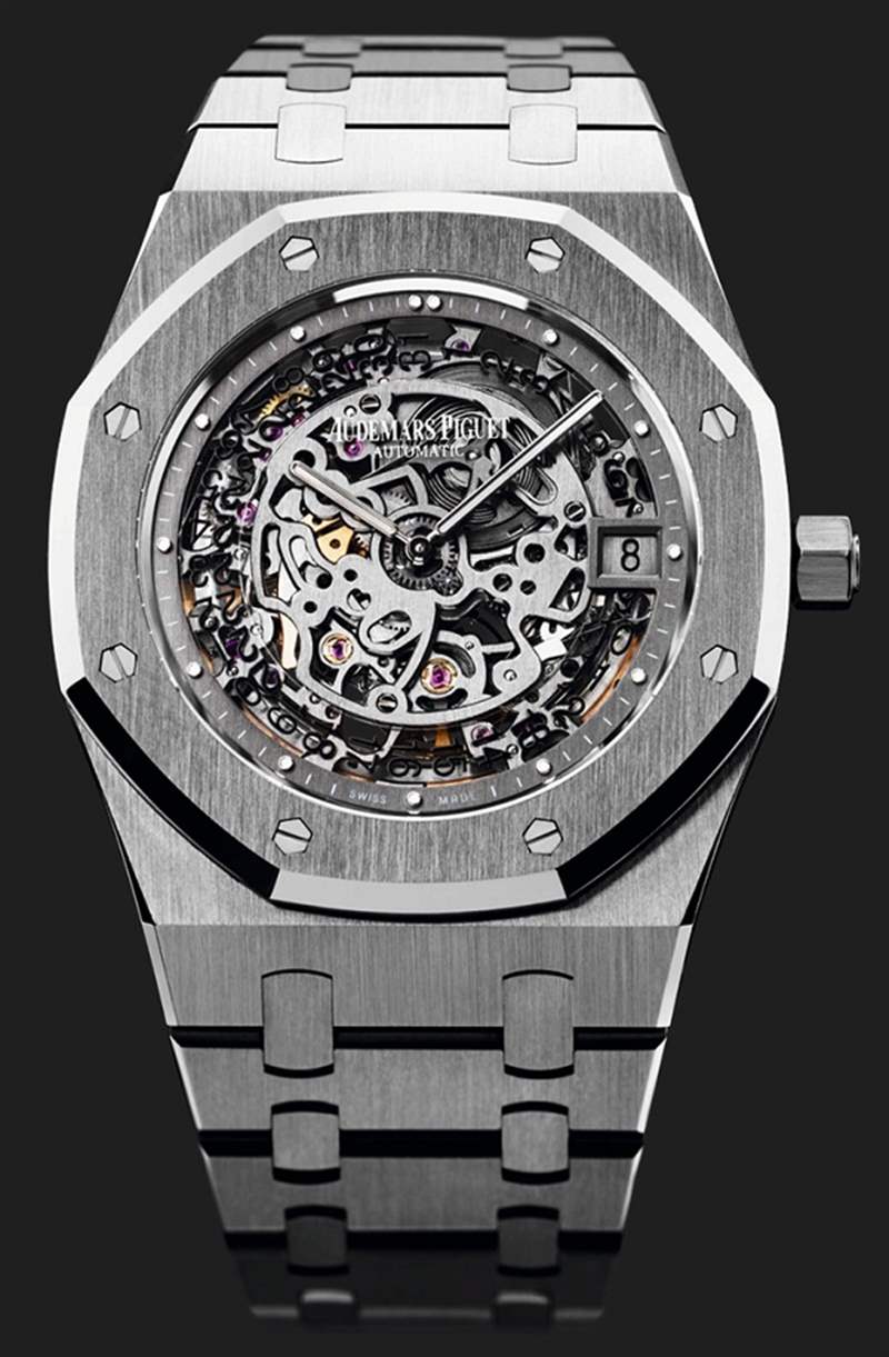 這兩款手表是為紀念皇家橡樹系列 40 周年而制作的有趣的限量版皇家橡樹手表。雖然這不是 2012 年唯一的限量版型號,但這是兩個鏤空版本,每個版本均采用鉑金表殼——有點諷刺地慶祝著名的高端鋼表。