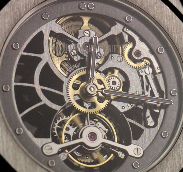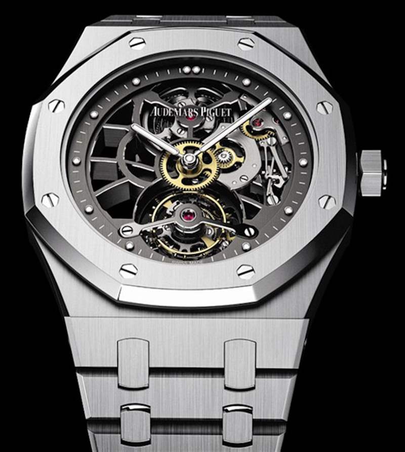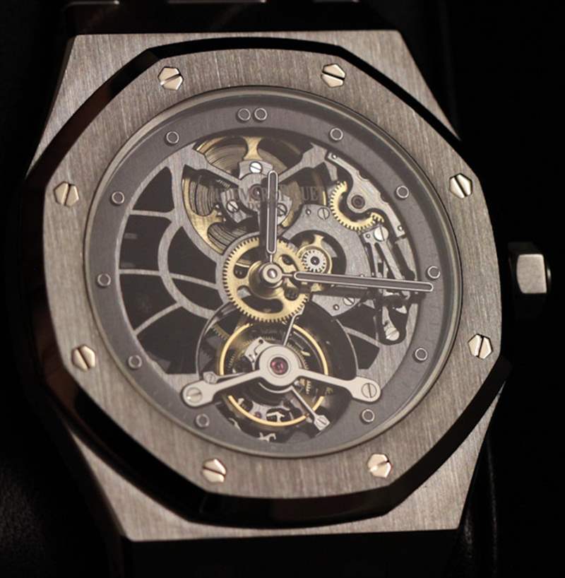 另一款寬41毫米,為陀飛輪版,名為愛彼鏤空超薄皇家橡樹陀飛輪40周年限量版。Geez這些名字很長。這款手表采用內部制造(和鏤空)Calibre 2924 手動上鏈機芯,具有 70 小時動力儲存。該機芯也有非鏤空版本型號,但愛好者喜歡所有的齒輪工作。這里的鏤空在風格上更傳統,并且可以說是兩種型號中更令人滿意的表盤,更大的表殼尺寸和更復雜的機芯。