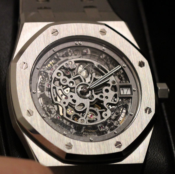 說實話,皇家橡樹系列對鏤空并不陌生。以前有人做過,但據我所知,Audemars Piguet 并沒有以同樣的方式做兩次。第一款是愛彼鏤空超薄皇家橡樹40周年限量版。他們使用術語“鏤空”與“鏤空”——它們的意思相同。據我所知,這些手表并不比標準的皇家橡樹手表更薄——所以我假設名稱中的“超薄”部分是出于營銷目的,因為現在很薄的手表。