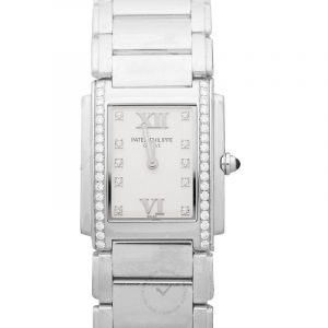 百達翡麗(Patek Philippe)享負表王之名多年,從來都是價值不菲,女裝系列所謂相對親民,但索價六位數字還是等閑事。1999年推出的Twenty-4 系列,是女裝表的入門首選,五位數字有交易。設計靈感源自Gondolo 其中一款女裝表,矩形面盤,12 時和6 時時標用上羅馬字樣,其余的就以寶石組成兩行平行線,伴以表殼的寶石裝飾,剛好相映成趣。精鋼表身配上薄身弧形拋光表帶,頗合事業女性的造型風格。