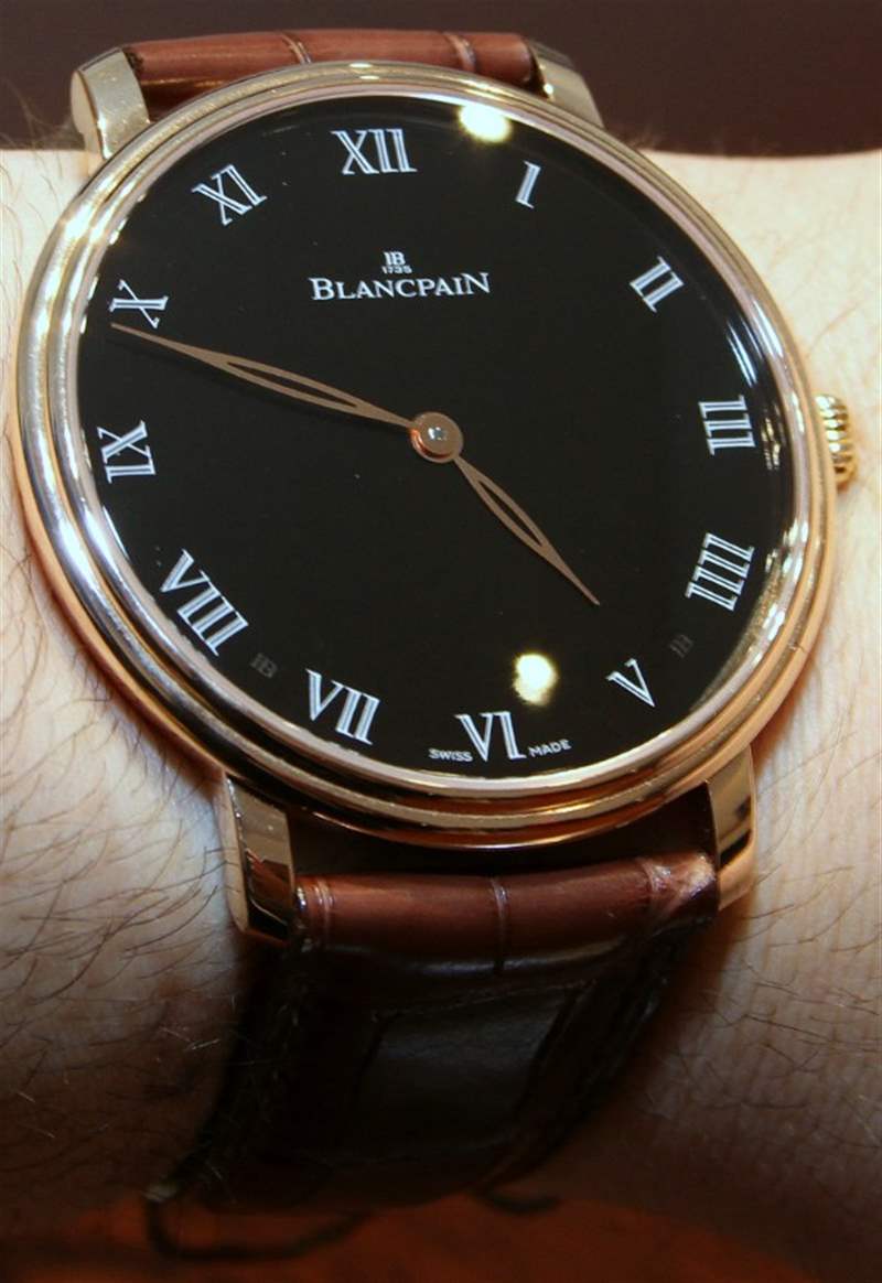 只是一塊漂亮的寶珀大尺寸薄表?不完全是。從表面上看,這款 Villeret 系列中的帥氣時計采用相當薄的手動上鏈機芯和極簡主義外觀的黑色或白色琺瑯雙手表盤。表盤上只有那些標志性的寶珀 18k 金葉形指針和琺瑯羅馬數(shù)字時標。最有趣的是手表背面的內容。