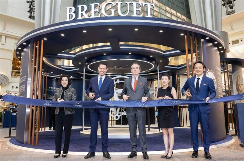 ▲由左至右為臺北101總經(jīng)理Lillian Chu、寶璣全球營運(yùn)副總裁Dimitri Aubert、寶璣副總裁及博物館館長Emmamuel Breguet、Swatch Group臺灣區(qū)總經(jīng)理Christy Lai、寶璣品牌副總Elvin Kuo。