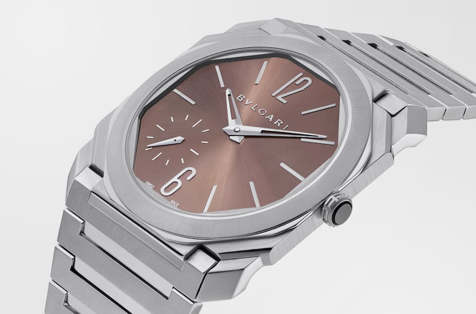 近年來表壇流行彩色面盤,因此先有藍色面盤崛起,后來綠色面盤也展現來勢洶洶的氣勢,一時間各品牌都在尋找下一個熱門色,或是透過前所未見的面盤新色,引起市場的注意與青睞。這此品牌新發表的Octo Finissimo Tuscan Copper顧名思義采用了Tuscan Copper這種色調,它既不像是鮭魚色,也不是色澤更深的咖啡色,反而呈現出帶點紫紅色的棕色調,由于手表采用的是不銹鋼表殼,因此屬于暖色系的Tuscan Copper色面盤會與表殼形成強烈的對比美感。