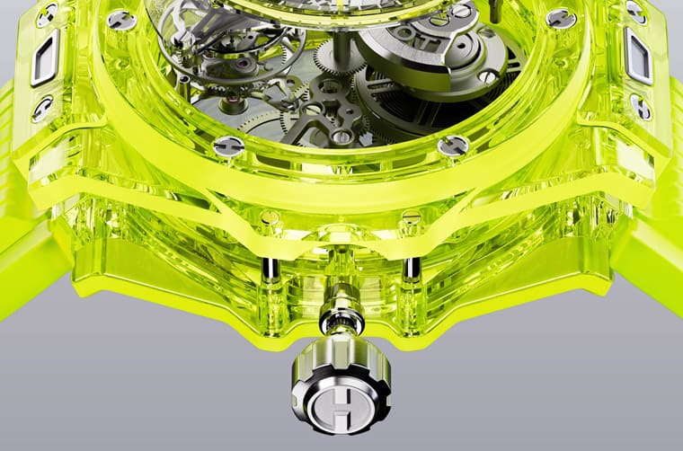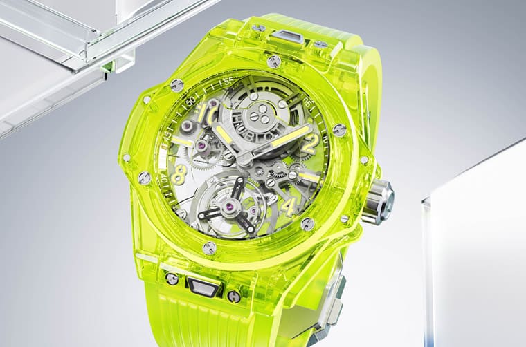 螢光黃透明表殼閃耀全場(chǎng)——Big Bang陀飛輪螢光黃SAXEM手表