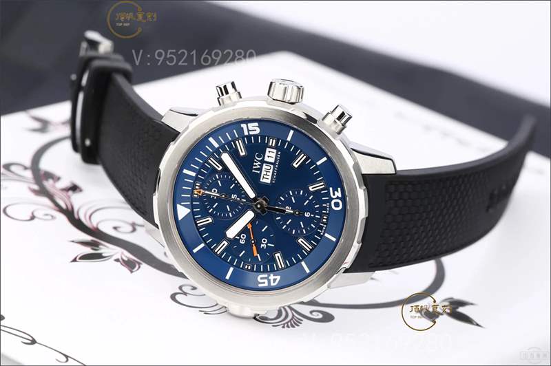 這個藍色來說,有扇面放射的效果,其實比老版的V6做得還要傳神,之前V6廠字面顏色是有點問題得,尤其沒有放射紋效果!萬國海洋復(fù)刻同樣提供黑、藍、白幾個選擇!!這款表同樣支持潛水游泳!