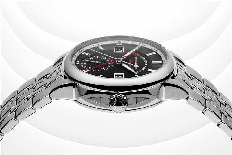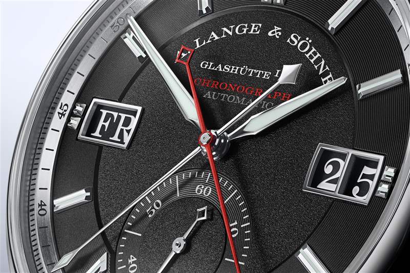 這里的表殼由三部分組成,直徑為 42.5 毫米(非計時款為 40.5 毫米),由不銹鋼制成。表面是啞光的,邊緣是用黃金時間倒角強調的。這款手表的額定壓力為 12 巴(或 120 米!),這對任何朗格或任何高端計時碼表來說都不是玩笑。表盤為黑色且質地細膩,按鈕貼花為白金,秒顯示的分數位于分鐘計數器外的內環上。表殼現在的厚度為 14.2 毫米,高于傳統參考值的 11.1 毫米。秒針、60 分鐘刻度和“Odysseus Chronograph”字樣均為紅色。您擁有與這個家庭的所有成員相同的可調式手鏈,并且做工精細得令人發指,我怎么強調它們在金屬中與在諸如此類的新聞照片中的影響力都不為過。事實上,收藏家之間的共識是,在過去的十年中,沒有一款手表在現實中比在新聞材料中表現得更好。