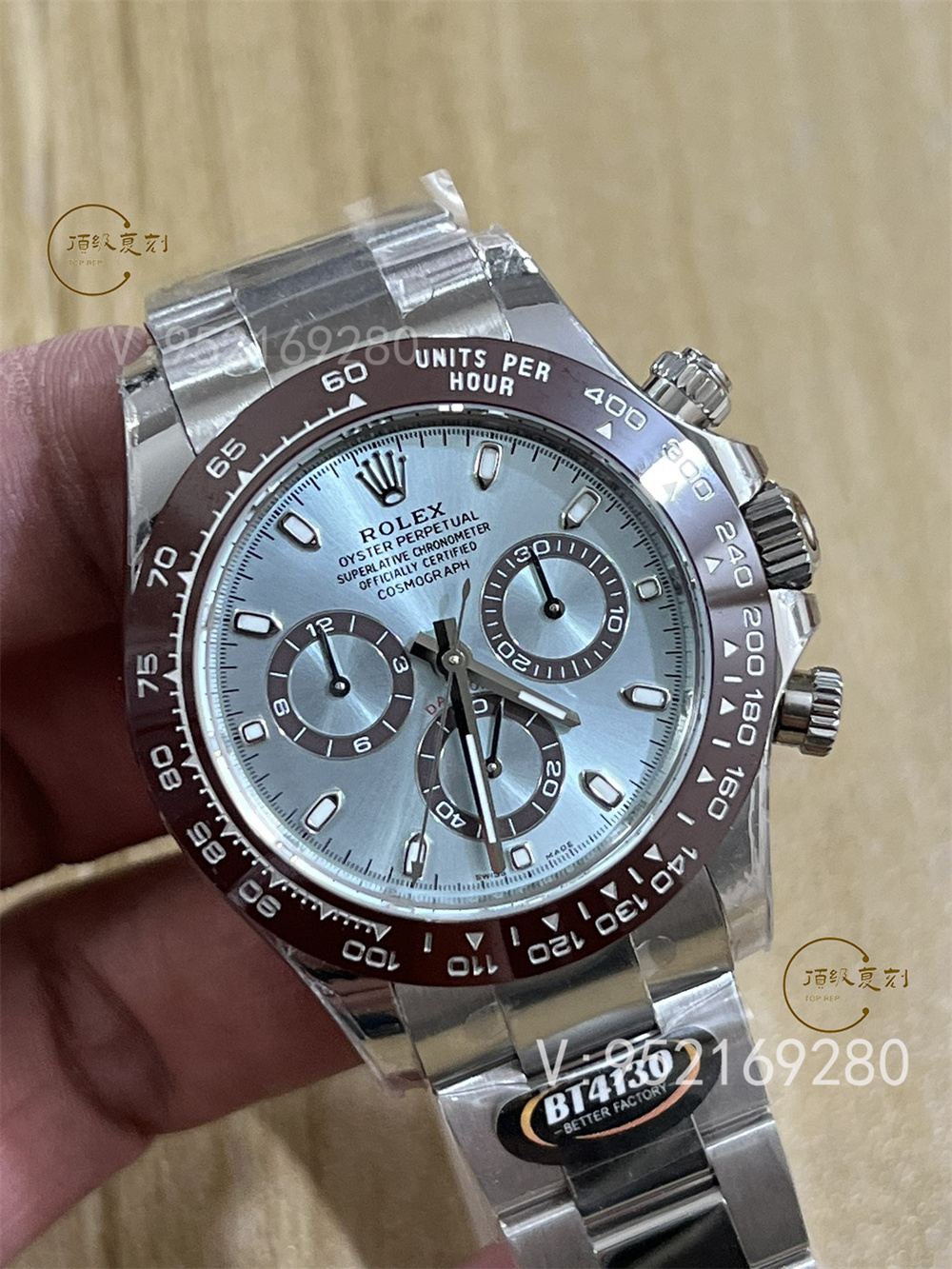 總結:BT廠勞力士冰藍迪通拿是目前迪通拿最高版本,無論在外觀和機芯上都是做到了力求完美的效果,當然價格方面一個4130機芯迪通拿價格就是兩塊7750機芯版本的迪通拿了,差距相當大,其實一般是沒有去冒充的情況。喜歡這款腕表的表友也可以直接和我們聯系。