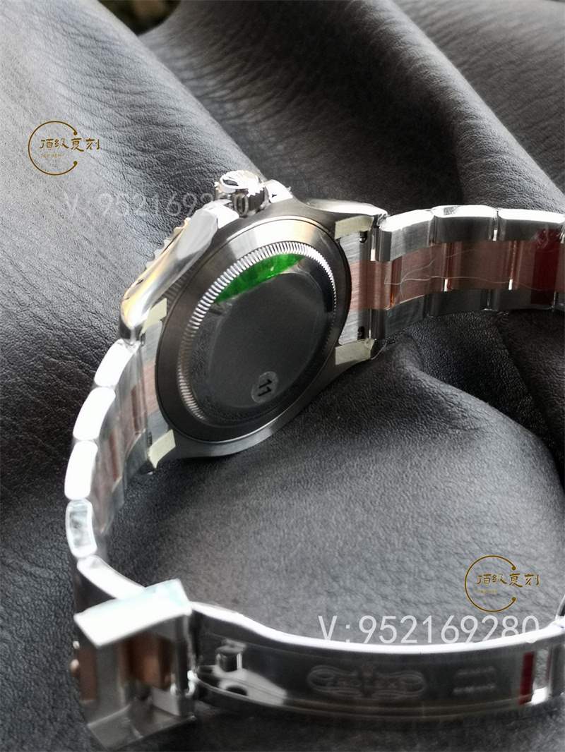 還有就是表帶整體都是904鋼材質,中間板帶上進行了電鍍工藝,這個表帶電鍍都是一節一節拆下單獨制作的,側面不會漏鋼,目前就只有C廠和VS廠兩個頂級版本的廠家能夠做,小廠或者是仿VS廠仿C廠都是整體電鍍,側面會漏鋼,也可以當做一個鑒別點。