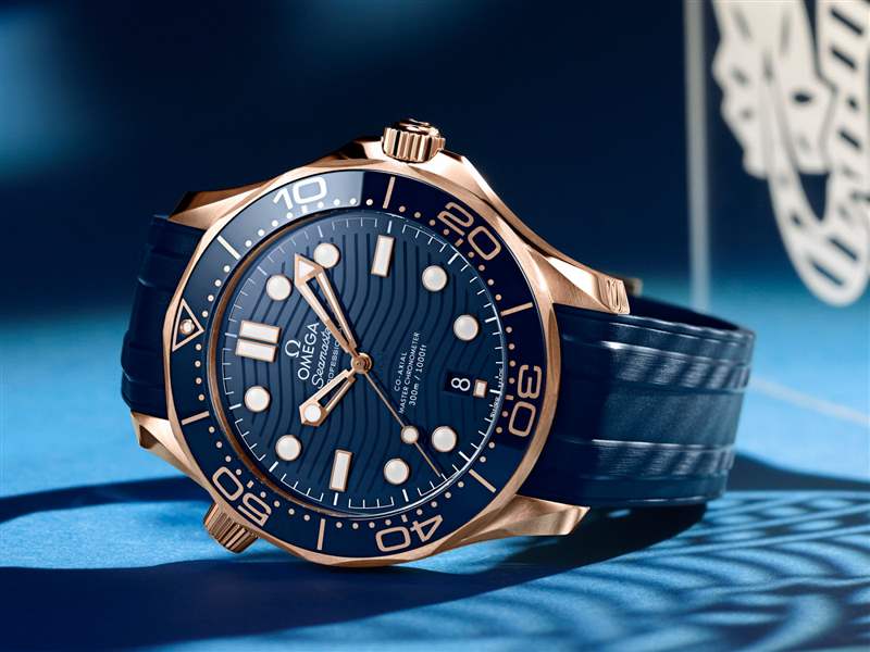 比如在歐米茄的推薦名錄里,有這樣一款產品:一體式藍色橡膠表帶,里側飾有波紋圖案,搭配針扣,適用于42毫米海馬系列300米潛水表。并且詳細說明:歐米茄表鏈和表帶均采用奢華材質打造,精妙的設計與您的腕表相得益彰。嚴苛的生產標準與質監技術確保統一的卓越性能……豐富的設計巧妙融合不同色彩、尺寸與材質(包括金屬材質),與您喜愛的腕表和諧搭配,締造全新矚目造型。再轉至其海馬系列300米潛水表42毫米至臻天文臺表表款,果然有藍色盤面搭配藍色橡膠表帶款,作為品牌最著名的標志性產品,它曾經在世界各地的巨幅海報中頻繁出現,特別深入人心。