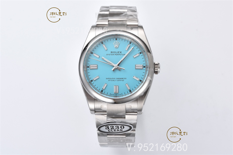 C廠勞力士蠔式恒動在逐漸齊全中,目前推出的是36mm尺寸,采用的是904精鋼材質,同步原版,表殼做工細膩,拋光拉絲工藝相結合,都是C廠水準。鏡面采用的是高品質藍寶石鏡面,通透度很高,耐磨耐刮,注意別磕碰。盤面以蒂芙尼藍為例,顏色調配還是很不錯的,比較起來C廠和VS廠的顏色調配都會比EW廠更好一些,尤其是一些盤面顏色比較特殊的款式,比如這個蒂芙尼,EW廠顏色是會略深的,而C廠和VS廠則更為準確無色差。