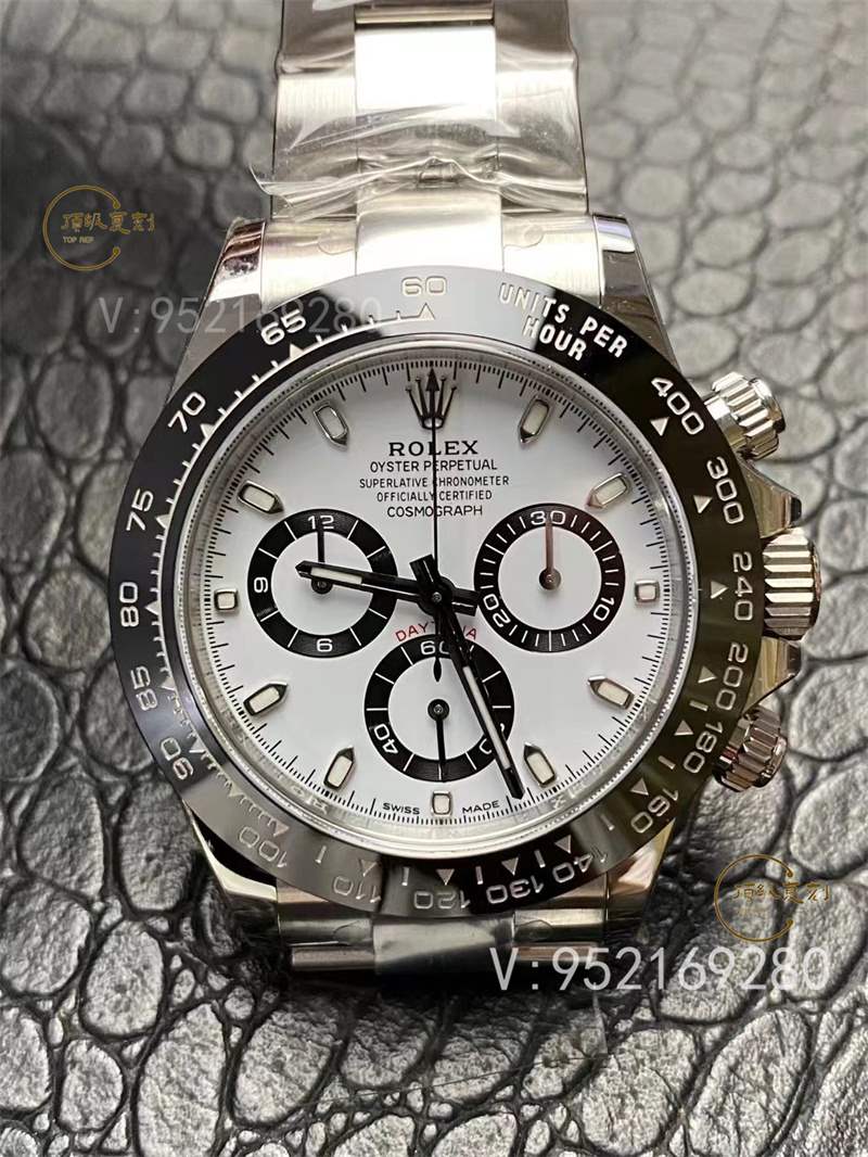 藍寶石鏡面的搭配,從而也是讓腕表的通透性方面非常強大,當然鏡面在后期使用起來也是不會出現刮痕,當然鏡面的內影處細節也是非常清晰,鏡面也是進行了電鍍工藝,從而增加腕表的通透感,在鏡面的六點位置也是有附和了防偽標識,這也是勞力士的常用細節點!然而對于字面細節,此次C廠也是做的很為到位,整體字面方面刻字很為清晰,然而對于腕表的功能盤CD紋也是非常清晰,經典的計時布局,也讓腕表在細節上處理來說,C廠也是很為不錯,當然對于字面下面也做了實拍記錄!