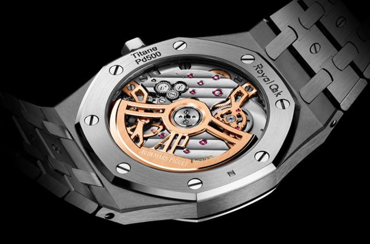 16202XT的表殼和鏈帶主要以鈦金屬制成,這在RO系列中已經(jīng)屢見不鮮,不過它的拋光表圈和連接錬節(jié)的零件乃是換上BMG這種材質(zhì),它還有很多不一樣的名稱,例如Glassy Metal(金屬玻璃)、Metallic Glass(玻璃態(tài)金屬)、Liquid Metal(液態(tài)金屬)以及Bulk Metallic Glass(塊狀金屬玻璃)等,2017年時沛納海曾研發(fā)出BMG-TECH?材質(zhì)并應(yīng)用在PAM00692等作品上令人記憶猶新。BMG大致而言是一種鈀基合金,它和傳統(tǒng)的玻璃有一些比較顯著的差異,例如非晶態(tài)、高強度、高度耐磨與耐腐蝕性等等;由于BMG耐磨強度又高,所以你會注意到16202XT和一般不銹鋼或K金的皇家橡樹Jumbo超薄表不同之處還包括表圈與錬節(jié)連接零件的表面采用拋光處理而非拉絲處理。同時手表的這種異材質(zhì)組合,也會比鋼或K金材質(zhì)戴起來更輕盈一些。