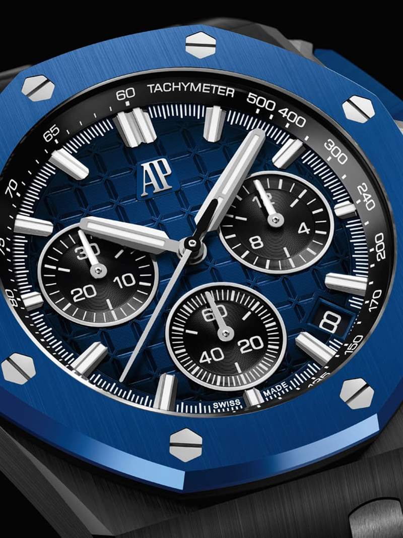 ▲愛彼近期發(fā)表新款43mm皇家橡樹離岸型自動(dòng)上鏈計(jì)時(shí)碼表,手表采用異材質(zhì)組合,如陶瓷配鈦金屬,同時(shí)面盤采用漸層色調(diào)搭配系列經(jīng)典格紋裝飾,散發(fā)迷人視覺效果。