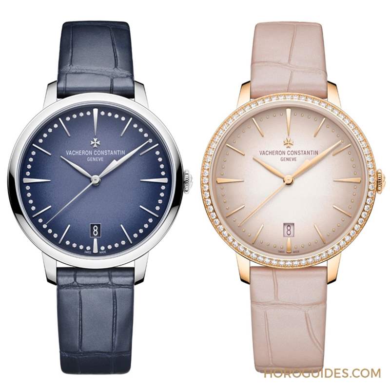 今年發(fā)布的四款Patrimony自動(dòng)上鏈腕表新作以改版新面貌亮相,內(nèi)斂精致依舊,尺寸比例經(jīng)過(guò)調(diào)整,圓弧線條經(jīng)過(guò)重新設(shè)計(jì),表冠略帶弧度,鑲貼時(shí)標(biāo)的前后兩端也略帶弧度;此外,日期窗的造型也經(jīng)過(guò)調(diào)整,將原本強(qiáng)調(diào)出深度的傾斜面,改為更顯俐落的垂直面并加上與logo字體相同色調(diào)的邊框。纖細(xì)的表圈,或鑲飾鉆石或施以拋光,光潤(rùn)閃耀的纖細(xì)表圈畫(huà)出一道閃耀的光圈,完美的圓弧定義出屬于古典主義的優(yōu)雅,18K白金表殼搭配深藍(lán)色表盤,18K 5N粉紅金表殼搭配胭粉色,表盤顏色呈漸變效果,表盤中心至邊緣由淺到深。