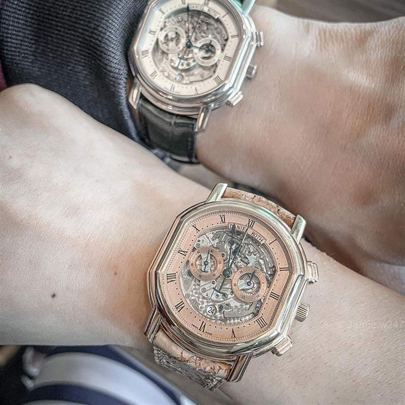 我喜愛(ài)手表已有好一段時(shí)間,主要關(guān)注最知名的品牌,例如勞力士和卡地亞等等。在第二個(gè)寶貝(是個(gè)男孩)出生后,我和另一半討論:如何可以表達(dá)我們對(duì)他的愛(ài)?我們認(rèn)為出生年的表是個(gè)很棒的方式,于是開(kāi)始尋找具有悠久歷史且能經(jīng)年傳承的品牌。在幾個(gè)候選的品牌中,最后我們找到了一只朗格1815 Up/Down Suarez限量版(是西班牙的鐘表珠寶經(jīng)銷商Suarez為慶祝75周年而出的20只限量版);它的獵表式表背上有著非常漂亮的雕刻。這只表符合我們?cè)O(shè)定的主題,而且它的編號(hào)和我們兒子的生日相同。從那時(shí)候起,我們成為了一個(gè)愛(ài)表的家庭,開(kāi)始探索各個(gè)品牌的故事。隨著我們?cè)酵度耄簿驮匠两阽姳淼氖澜缋铩S谑俏覀冮_(kāi)始收藏更多具有不同故事的手表。