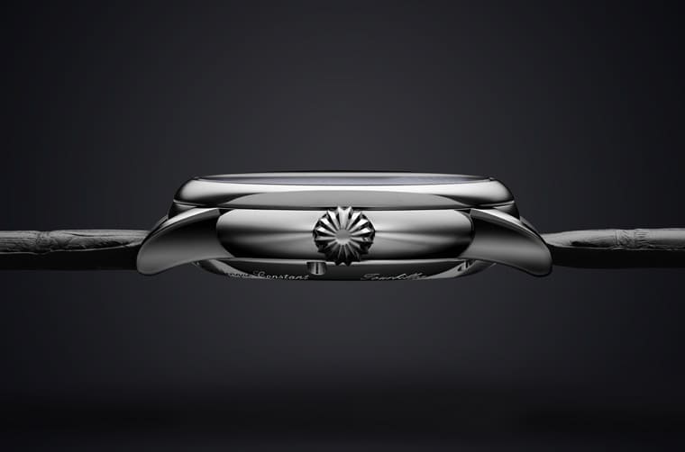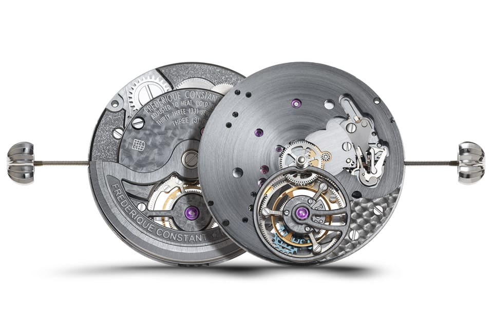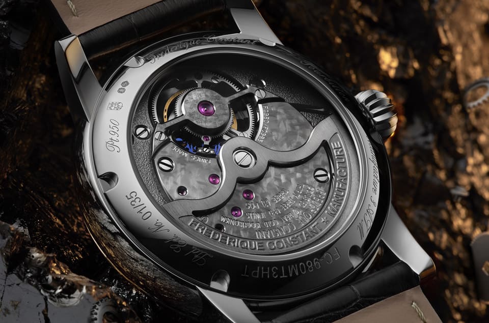 表款搭載的是他們2008年首度研發而成的FC-980自動機芯,這枚機芯除了達到陀飛輪等級的復雜度,還蘊含矽質擒縱輪和擒縱桿等零件,有助于優化手表的性能與精準度。而康斯登當初在研發機芯時也刻意將陀飛輪組件的重量控制在0.59克,使其在運轉過程中所消耗的能量較低,間接使得機芯的動力儲存能夠維持在38小時的正常水準。