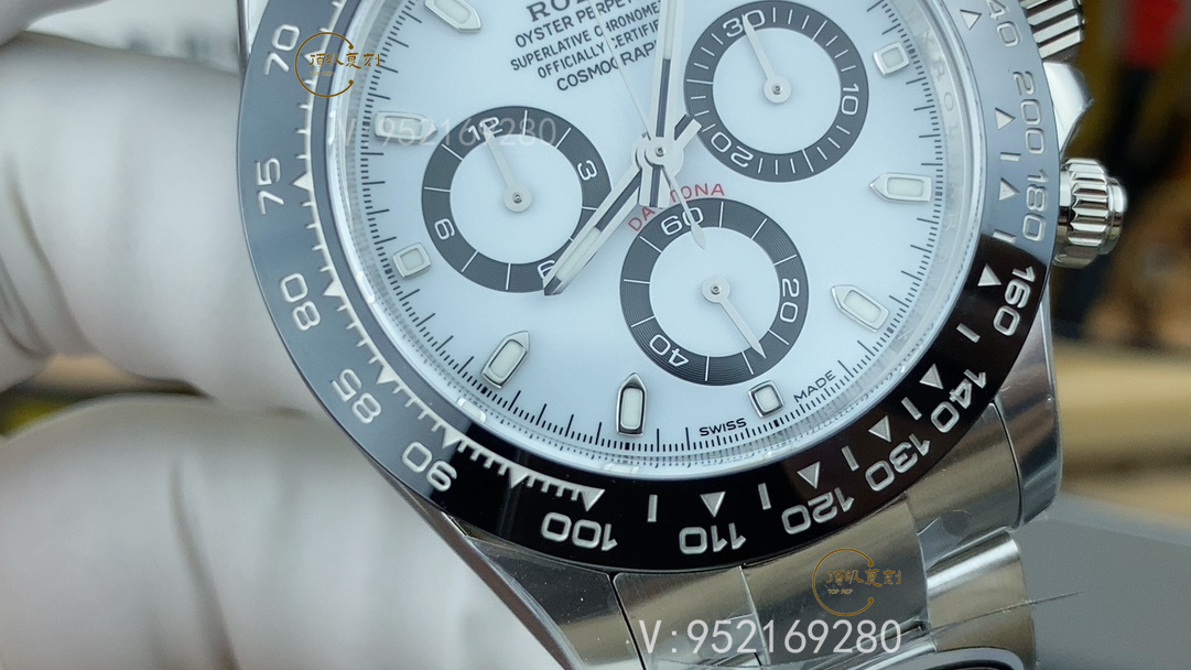 大家好,復刻表的熱度一直很高,因此市場上出現了很多復刻表廠家在開模同一款腕表,當然這也是一種常見的現象。對于迪通拿來說,則是從最開始的N廠4130迪通拿開始,后期則是出現了Clean廠勞力士,BT廠勞力士,APS廠勞力士等,其實每一個工廠做工方面差不多,但是對于熱度最高的則是為C廠,當然這也是源于這個廠的一個名氣,同時細節方面的處理也是很為到位。首先大家要明白C廠迪通拿重量上和原裝是有差距的,膠帶款式在109克左右,鋼帶款式則是在140克左右,當然對于C廠迪通拿來說,在現如今的復刻表市場上也是很具魅力的廠家,細節做工方面的處理也是非常到位,下面我們就對于C廠勞力士迪通拿做一個詳細測評分享。