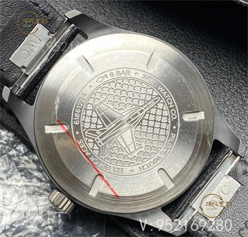 搭載的是一個西鐵城的9039機芯,選入式的把頭向下旋轉,彈開以后拉出一檔,直接調時間,向下旋轉,旋轉針轉動一檔調試,這個也是對板某個原裝的,一個密底的設計,后蓋的圖案是一個戰(zhàn)斗機的圖案,這個圖案做的也非常的清晰立體,顏值非常高的一款腕表,整體的做工細節(jié)都是非常到位。