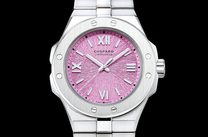 ▲Alpine Eagle三針表新增靈感來自阿爾卑斯山巖石茉莉的粉紅色面盤新作。