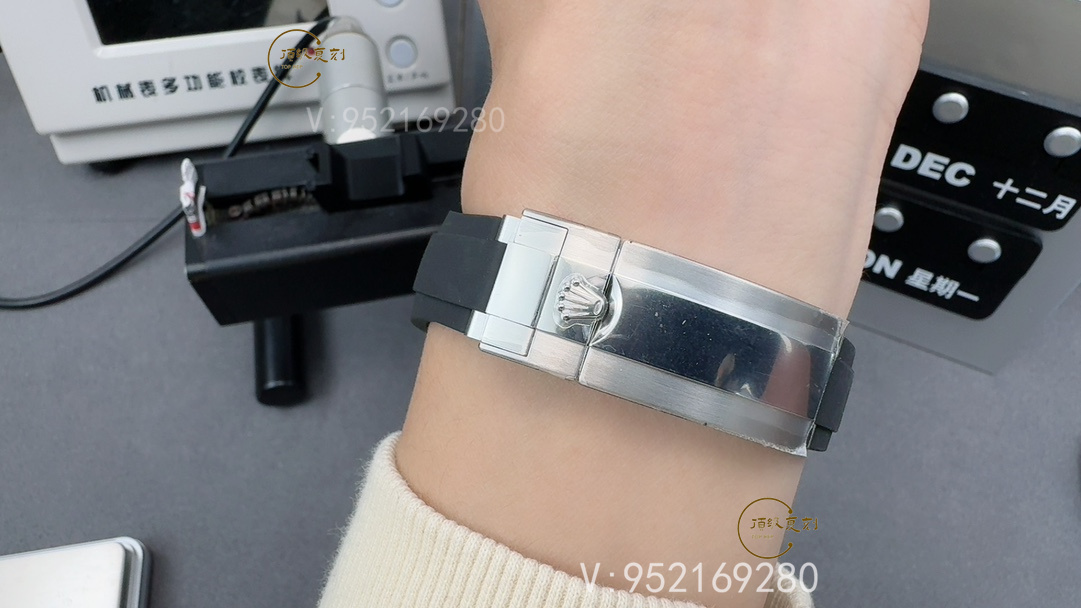 配重與表殼工藝: 這次的V3升級版在配重上做了重大改進,整個表殼包括厚底蓋都是一體加工而成的配重表殼,重量接近原裝18K白金版本。厚底蓋的重量比普通不配重的版本重很多,使得整表的重量達到了148.4克,非常接近原裝。