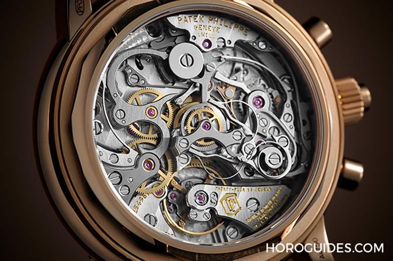 透過藍寶石玻璃表殼底蓋可一目了然地欣賞到CHR 29-535 PS Q機芯細節,這款機芯于2012年搭配編號5204P-001腕表問世,傳統結構的手動上鏈、兩枚導柱輪和橫向離合器,結合七項專利創新設計,當中六項針對計時秒功能,一項為雙秒追針計時裝置而設。整枚機芯由手工潤飾。
