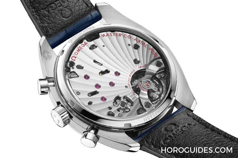 表款搭載以9900為基礎的9908手上鏈機芯,其中最顯眼的特色:Chronoscope橋板設計,是歐米茄第一次從擺輪為中心、而非機芯中央,開始裝飾阿拉伯式花紋的日內瓦波紋;為了提升腕表的動力儲存,機芯設置了兩個抗磨損類鑚碳(Diamond-Like-Carbon)發條盒,并搭載導柱輪裝置,通過大師天文臺認證。