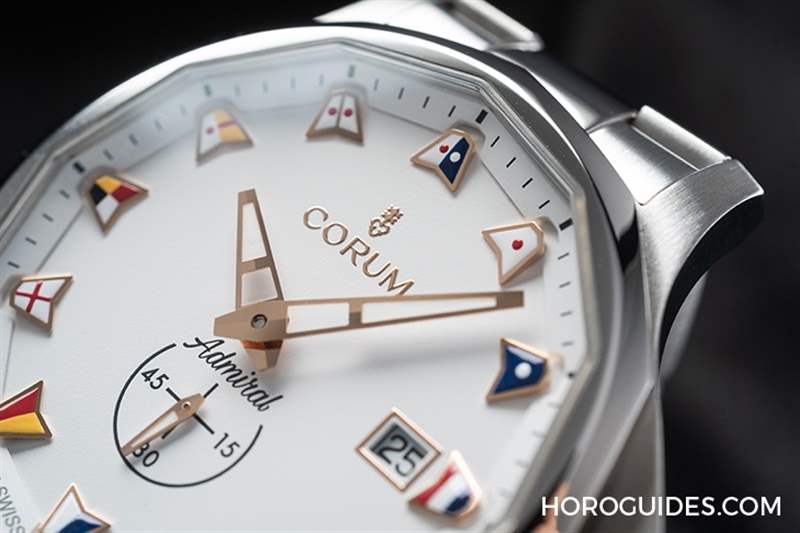 Admiral海軍上將系列在目前CORUM旗下的三個經典系列中,是一個兼具設計以及實用的系列。1960年代系列誕生之初,是一款具有防水功能的方形表殼的帆船運動表,到了1983年重新設計,將表殼修整成12邊形的輪廓,并且加入充滿海洋精神的海事旗語時標,才成為我們今天所熟悉的海軍上將系列的樣貌。