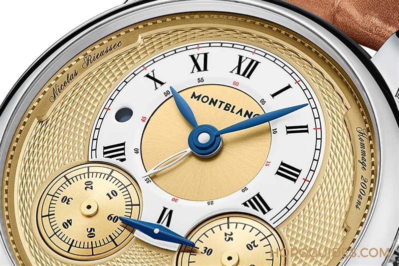 為了向計時碼表發明者Nicolas Rieussec的創作致敬,表盤外緣安置了鐫有「Nicolas Rieussec and Homage 200 ans」(200周年志慶)字樣環圈,圍繞著精致的陽刻浮雕扭索紋裝飾。其他細節包括6點鐘位置以藍鋼螺絲固定的金色日期視窗。全新設計的棕色鱷魚皮表帶搭配整體設計,并將限量發行數量訂為200枚,以銘記值得紀念的200周年慶。