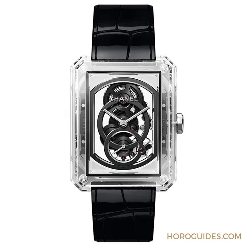 如果2018年的Boy?Friend 鏤空腕表是鏤空機(jī)芯與洗練風(fēng)格的完美協(xié)奏,那么這一款Boy?Friend X-Ray 鏤空腕表作品,可以說(shuō)是CHANEL透過(guò)Boy?Friend 系列全新演繹藍(lán)寶石水晶工藝精髓,進(jìn)一步將鏤空機(jī)芯的流暢線(xiàn)條架構(gòu)與「通透」概念發(fā)揮到淋漓盡致的作品。由曲線(xiàn)橋板和齒輪系等零件層層堆疊的Caliber 3鏤空機(jī)芯,藉由透明藍(lán)寶石水晶表殼所承載,看起來(lái)就像是充滿(mǎn)后現(xiàn)代想像的懸浮建筑。盡管透明的材質(zhì)特性模糊了形體的質(zhì)量,卻透過(guò)表殼切割角度的變化強(qiáng)化了輪廓的線(xiàn)條張力,讓Boy?Friend原有的俐落風(fēng)格增添一分力量感,成為一款也能讓風(fēng)格男士為之傾心的腕表。值得一提的是,為了柔化機(jī)芯和表殼連接處的線(xiàn)條,特別將細(xì)致的藍(lán)寶石水晶表圈以霧面拋光的方式進(jìn)行表面處理,凸顯出品牌的貼心入微,以及在細(xì)節(jié)之處依然一絲不茍的堅(jiān)持。Caliber 3 機(jī)芯在澄澈通透的表殼和面盤(pán)的烘托下,優(yōu)雅運(yùn)轉(zhuǎn),更顯迷人。