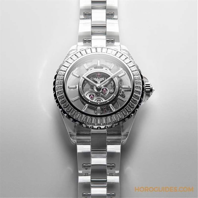 在傳統制表世界里,一只新表款的誕生多半是以研制出新機芯為開端,然后再就機芯本身的條件去設計表款外觀。然而,在CHANEL的制表世界里,設計先行,之后借重相關技術資源去實現它的想像,也正因為如此,奔馳的創意不會被既有技術局限,屢屢創造出令人倍感新意的作品,好比2020年為了慶祝J12問世20周年所打造的限量表款J12 X-Ray,就是為了實現香奈兒腕表創意工作室總監Arnaud Chastaingt對J12的想像:抽掉黑白,只剩輪廓,而且達到盡可能透明;于是,以藍寶石水晶打造的J12 X-Ray腕表誕生了,搭載零件格外纖細、透明橋板的全新機芯Caliber 3.1,甚至還打造出歷來首見的藍寶石水晶鏈帶。