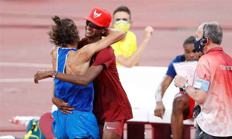 這是2020東京奧運最振奮人心的一刻之一!賽前被認為在男子跳高項目奪金贏面最大的Mutaz Essa Barshim,最后決戰時和來自義大利的對手Gianmarco Tamberi都跳過了2.37公尺,卻也雙雙在挑戰奧運紀錄的2.39公尺中跳了三次皆失敗,裁判原本要給他們加賽分出勝負的機會,他主動向裁判表示不加賽,和長期是勁敵也是好友的Tamberi共享金牌榮耀。兩個人激動擁抱的那幕,著實是很戲劇性的精彩瞬間。
