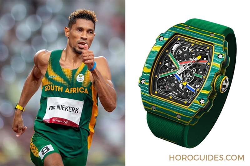 南非短跑好手Wayde van Niekerk,男子四百公尺世界紀錄保持人,他出現在本屆奧運運動場時,手上配戴著一只色澤鮮亮的腕表-Richard Mille RM67-02。這只表是Richard Mille特別為他所打造,配色得自南非國旗。