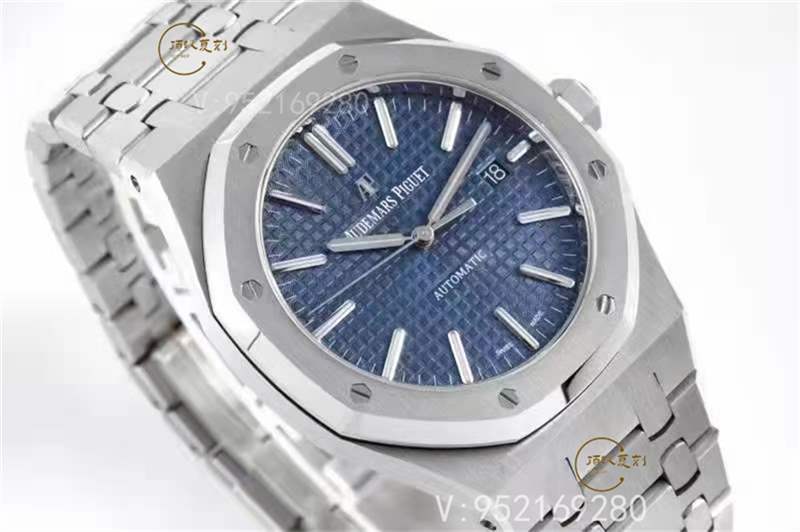 APS廠一體3120機芯最強”鋼王”殼套與原版一致,直徑41毫米和厚度 9.8毫米 ;APS廠的15400是市面上唯一能與原版各部件互換通用的版本,表殼所有結構位置和裝配方式與原版一致 ;表殼表帶細膩的拉絲且不會鋒利的工藝更突顯出APS一直對細節(jié)的一絲不茍 ;表帶頭粒連接表頭處與正品一致的活動頭粒設計;表扣的開關質感與各部位的雕刻工藝均與正品一致;APS廠的15400蘭色字面做工與顏色和正品放在一起幾乎毫無色差 ;機芯方面完美復制原裝3120機芯,真正的無卡度一體機芯,不再是9015加甲板。