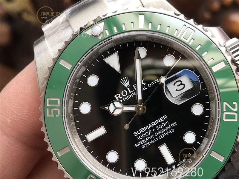 41mm新款的勞力士水鬼,作為一個大項,肯定是要拿真品一比一開模具,而不是僅僅參考40尺寸的水鬼然后在尺寸上做大。所以此款腕表的細節還是一比一復刻,而且采用一表一卡一碼。