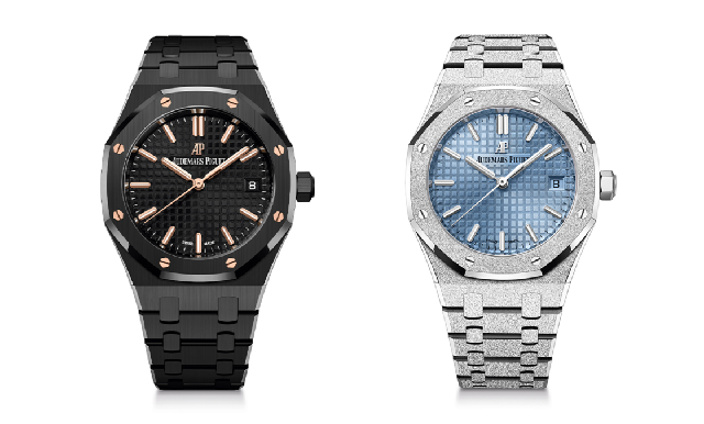 Audemars Piguet愛彼于34mm皇家橡樹自動上鏈腕表系列再推兩款新作:黑陶瓷與藍面霜金表款。黑陶瓷表款為34mm皇家橡樹自動上鏈腕表系列的首款全黑陶瓷腕表。細致柔滑的34mm黑色表款在玫瑰金點綴下,展現雙色對比風貌。獨特霜金工藝藍面款由愛彼與義大利珠寶設計師Carolina Bucci于2016年聯手打造,以18K白金腕表搭配全新淺藍色「Grande Tapisserie」大型格紋表面,再展璀璨光芒。