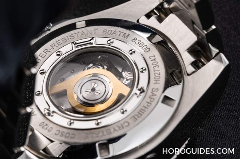 這只表有個令人驚奇之處,防水600米與藍寶石水晶玻璃透明底蓋這兩件事竟然同時出現(xiàn)。這樣的配置實屬罕見,原因在于一只表要能防水,最基本的條件就是不滲水,要如何做到不滲水,而且是在水壓強大的情況下?表殼組件接合縫隙越少越好,材質(zhì)要堅實。在這樣的前提下,一般能提供高防水性能的潛水表款,表背多為金屬實底蓋。