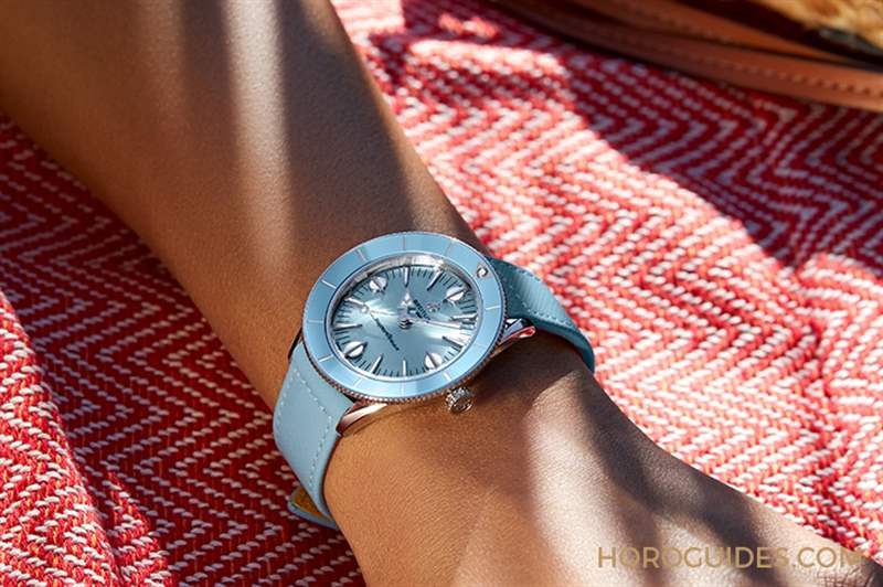 百年靈執(zhí)行長Georges Kern表示:「這款向原創(chuàng)SuperOcean超級海洋腕表致敬的現(xiàn)代復(fù)古腕表,是百年靈女款腕表系列令人興奮的新成員。當(dāng)然這適合工作時佩戴,造型十分出色,但表款散發(fā)著享受陽光的夏日氛圍,令人不禁想在海灘上歡度一整個周末。」他也指出,備受青睞的原版腕表頌揚(yáng)著1950年代和1960年代日益流行的海濱休閑。如今,此種悠閑的氛圍充分反映在Pastel Paradise系列陽光明媚的表盤上,讓人仿佛沉浸于微風(fēng)輕拂發(fā)絲的美好時光中。