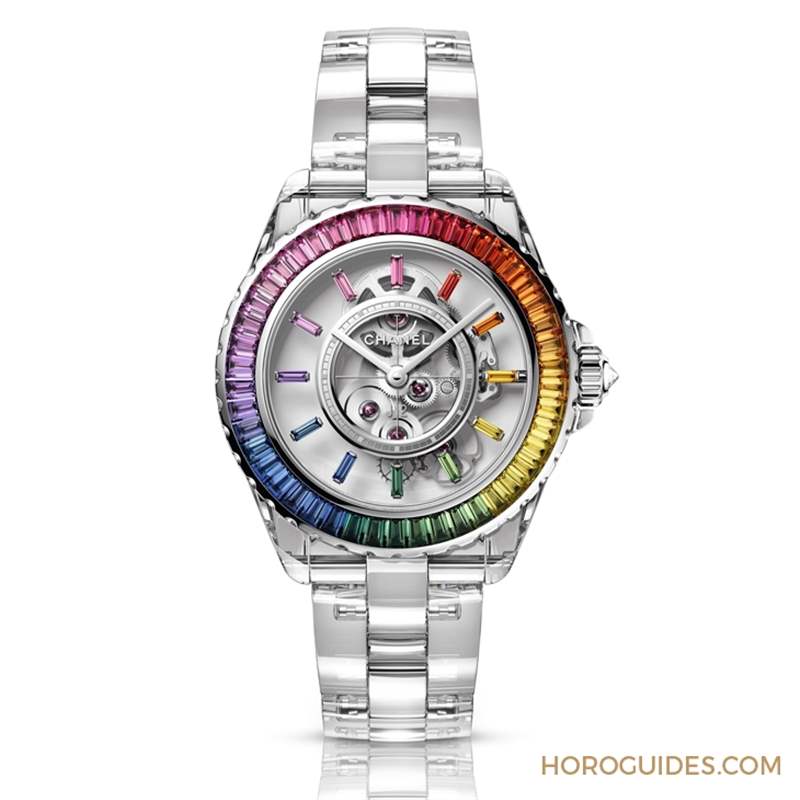 當J12 Electro Star一上手,鑲嵌在表帶側邊的藍寶石就成了一圈環繞著手腕閃閃發亮的彩虹。所謂的彩虹圈,因為這款表而有了新的釋義。