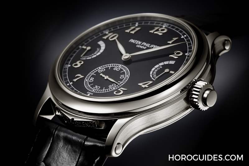 然而這款Ref.6301P 表徑為44.8mm,但厚度則是僅有12mm,是目前市場上大自鳴腕表少見的薄型化設計。這次采用鉑金表殼,搭配黑色大明火琺瑯面盤,以及白金制的柳葉形指針(具有自鳴表少見的夜光功能)和立體寶璣阿拉伯數字時標,小三針搭配動力儲存的面盤配置,整體風格簡潔而富現代感??刹僮鞑考ū砉谂c同軸的三問報時按鈕,以及配置在表殼6時位表耳間的功能選擇滑鈕(專利的三段功能可選擇:左側的小自鳴、中間的大自鳴,以及右側的靜音)。百達翡麗表示6301P將不采限量形式發售,不過因為制作難度高所以年產量還是相當稀少。