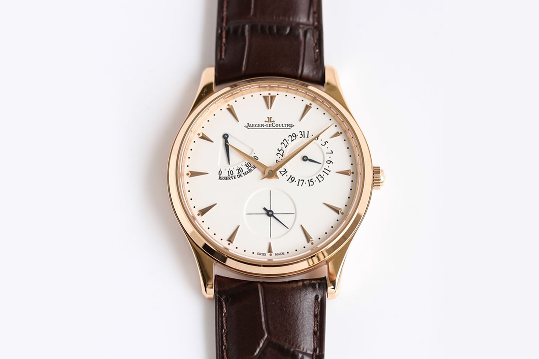 GF廠復刻版積家小丑1378420腕表直徑39mm,外殼為316L精鋼, 鏡面選用藍寶石水晶玻璃,透氣性極佳,整塊手表表面處理非常完美。Master Ultra Thin Réserve de Marche超薄大師系列動力儲存顯示腕表將純美線條與纖薄的精鋼表殼完美融合,并搭載多項精妙的復雜功能,與優雅的表盤相得益彰,風格優雅大氣,與男性手腕和諧搭配。