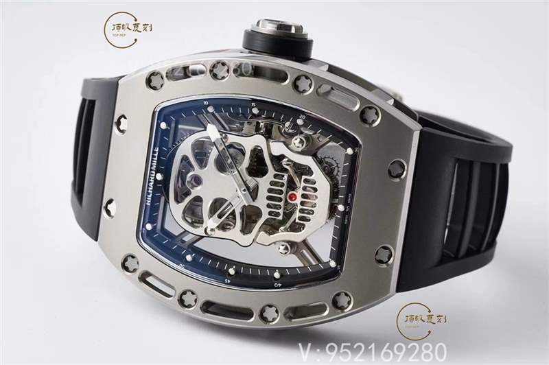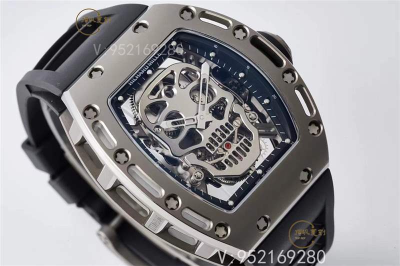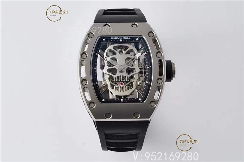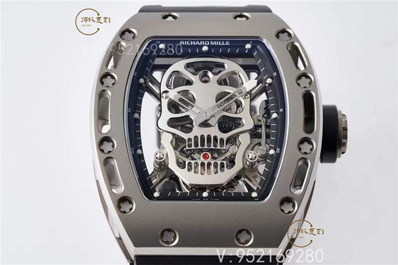 RM 052顱骨陀飛輪腕表就是骷髏圖案的視覺化詮釋。機芯底板和夾板采用鈦合金骷髏形打制,將骷髏圖案完美的融合于機芯之中。表圈和表殼底蓋都做了鏤空的處理,即減輕了腕表的總體重量,又在視覺上符合了骷髏的主題。