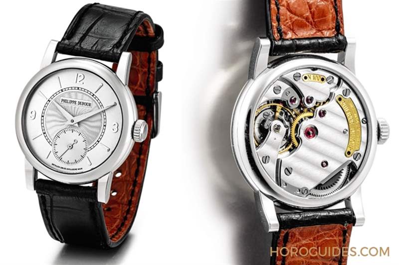 這件拍賣編號2152的拍品是首度被釋入拍場,委售者向Philippe Dufour親自購入,表盤中心飾以索紐紋,副表盤小為白色漆面,采用太子妃指針,機(jī)芯飾以日內(nèi)瓦波紋。