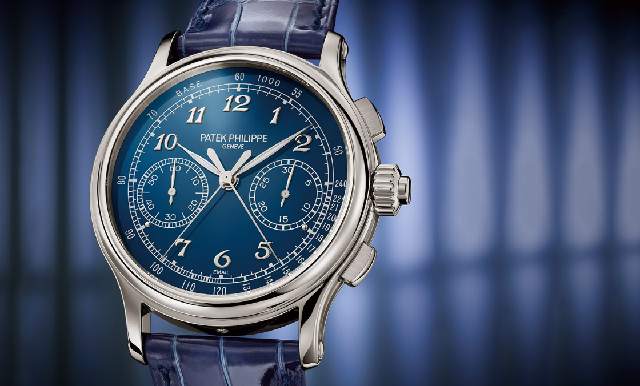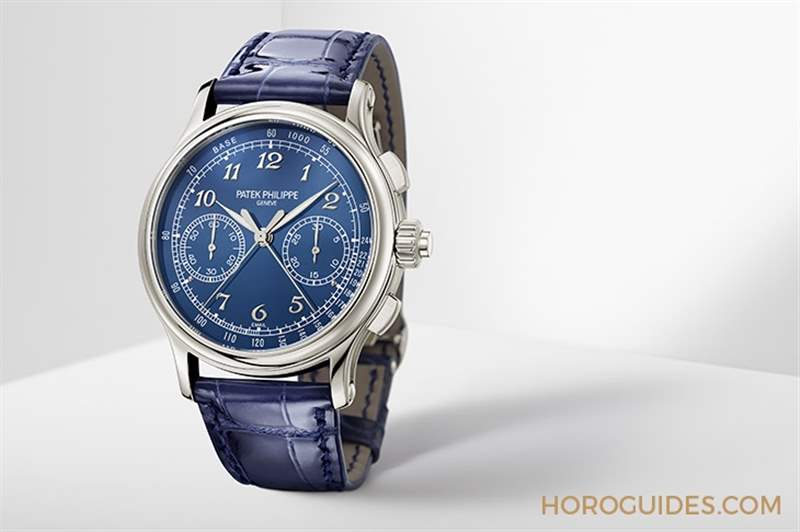 5370P在2015年問世,當時以鉑金材質搭配大明火琺瑯黑色面盤;2020年新款的5370P-011,則是藍色琺瑯面盤版本,整體看起來仍然沉穩.表面以纖細的葉形夜光涂層指針與白金立體寶璣式數字時標,印有白色測速計刻度。大明火琺瑯面盤是在PP廠內自行制作,6點鐘位置的“Email”字樣是法文中琺瑯的意思,面盤以金質盤面涂布釉料之后,以850度高溫窯燒,之后再耗時3小時進行盤面的打磨。