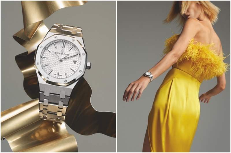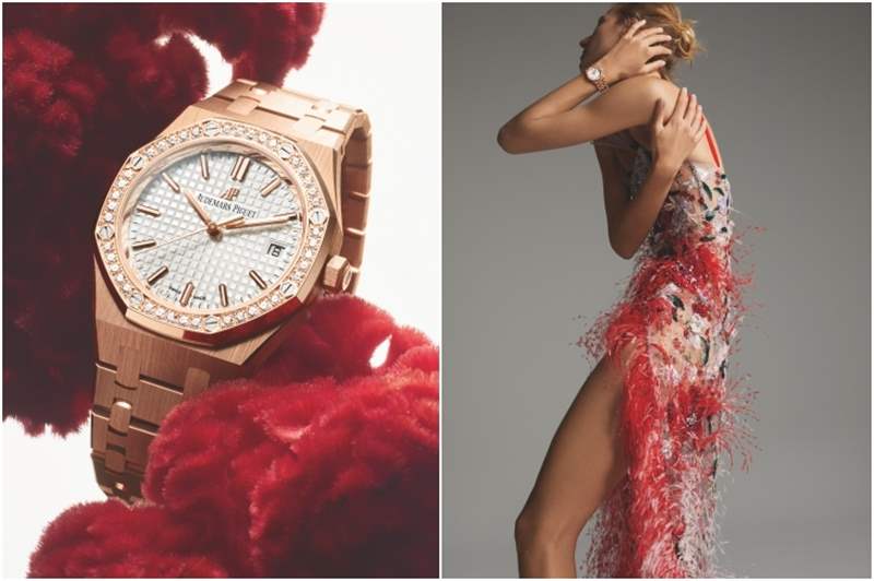 愛彼選以最新的皇家橡樹自動上鏈腕表34mm型號,搭配Ralph&Russo時裝。此表款包含4款精鋼與18K玫瑰金材質腕表,呈現不同風格。18K玫瑰金款式飾有鑲鉆表圈與銀色調大型格紋裝飾「Grande Tapisserie」表盤。表盤的大型格紋設計是以內部珍貴的專門知識為基礎,經過一連串復雜的制造過程才完成;此設計可追溯至1970年代的雕刻機,在表盤薄薄的金屬板上雕刻出小方形,復制印刷模版的圖案。同時以無縫「編織」方式刻出小菱形,形成分隔方形的細小凹槽,創造掛毯的外觀。