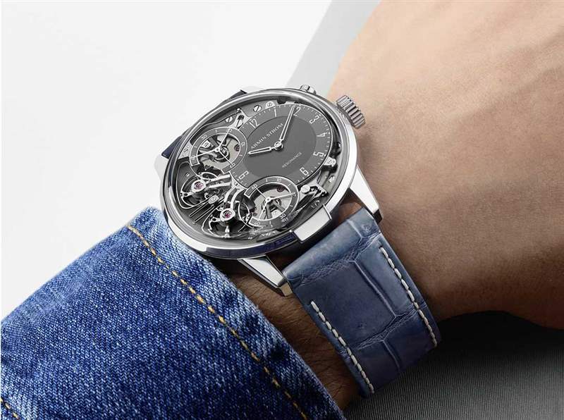 共振現象首先由克里斯蒂安·惠更斯(Christiaan Huygens,1629-1695)發現,共振現象是指物體在受到隨時間周期變化的力時吸收能量的能力。兩個世紀后,在制表領域,得益于亞伯拉罕-路易·寶璣,這種傳動是通過兩個相互作用的元素產生振動來實現的。這種布置具有顯著的優勢:它保證了計時的穩定性。2016年,Armin Strom引入了對此的當代解釋,這要歸功于巧妙的機制。一個擺輪將能量傳遞給另一個吸收能量的擺輪。這種專利解決方案有什么特別之處?為了在兩個組件之間形成物理連接,需要一個可脫離的彈簧。這個彈簧在視覺上突出了兩個輪子向相反方向轉動的共振現象。今年的鏡面力量共振腕表采用全新的美學設計,令人欽佩ARF21機芯的運行。