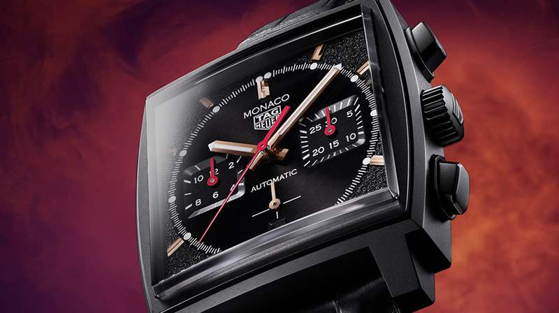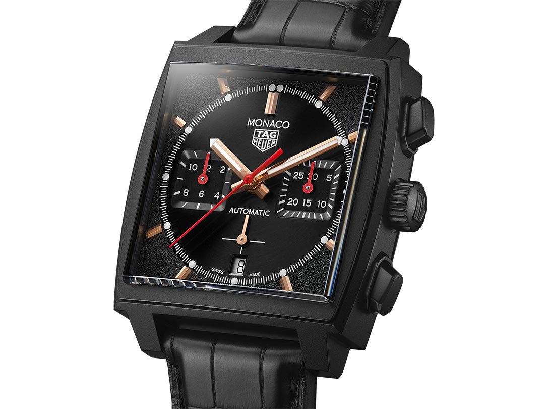 與單色背景相對的理想之作是鍍玫瑰金的時針和分針以及鮮紅色計時碼表。這款時計的所有功能均由豪雅02型機芯提供動力,可提供80小時的動力儲存。這款自動上鏈機芯,包括鏤空擺陀,透過表殼的藍寶石表背顯露出來。為了達到完美的和諧,摩納哥特別版大獎賽采用舒適的黑色鱷魚皮腕帶,搭配鈦金屬折疊式表扣。