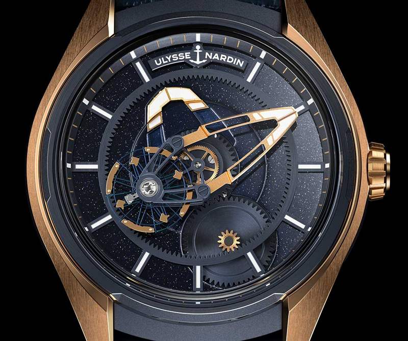 那些知道它的人不會改變風(fēng)景,但完全被震撼了……的?Freak X Aventurine?手表 保持其令人難以置信的引人注目的系統(tǒng), 取代了傳統(tǒng)的小時和分針二重奏。對于新手來說,發(fā)現(xiàn)這款時計有望帶來無與倫比的視覺體驗。這一次,尤利塞·納爾丁將每60分鐘旋轉(zhuǎn)一次的飛行旋轉(zhuǎn)木馬與奢華的藍(lán)色砂金石表盤相結(jié)合,體驗更加令人嘆為觀止。機(jī)械結(jié)構(gòu)具有漂浮在星空上的宇宙飛船或航行在海浪上的船只的特征。這款原始的時間顯示樣板設(shè)計采用直徑43毫米的藍(lán)色PVD鈦金屬和玫瑰金表盤。這種材料組合的選擇增強了手表的最新個性。